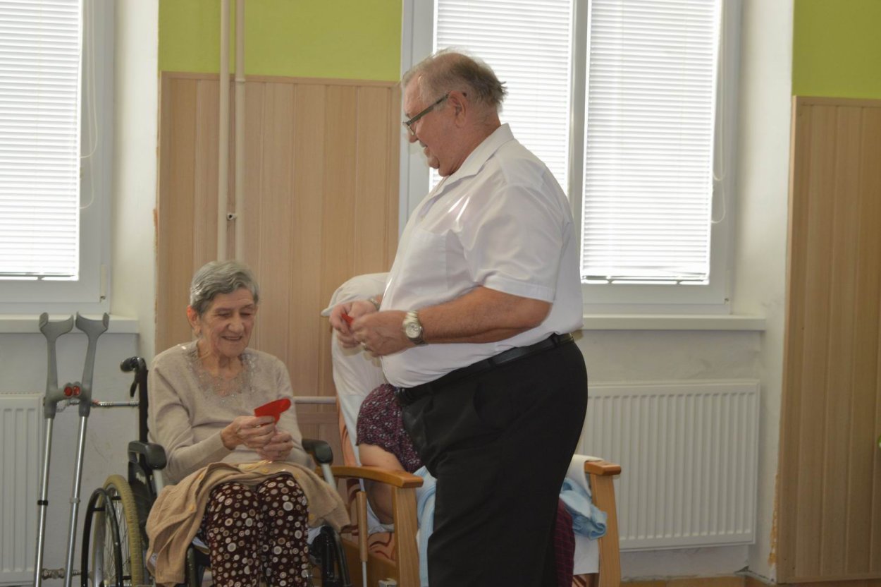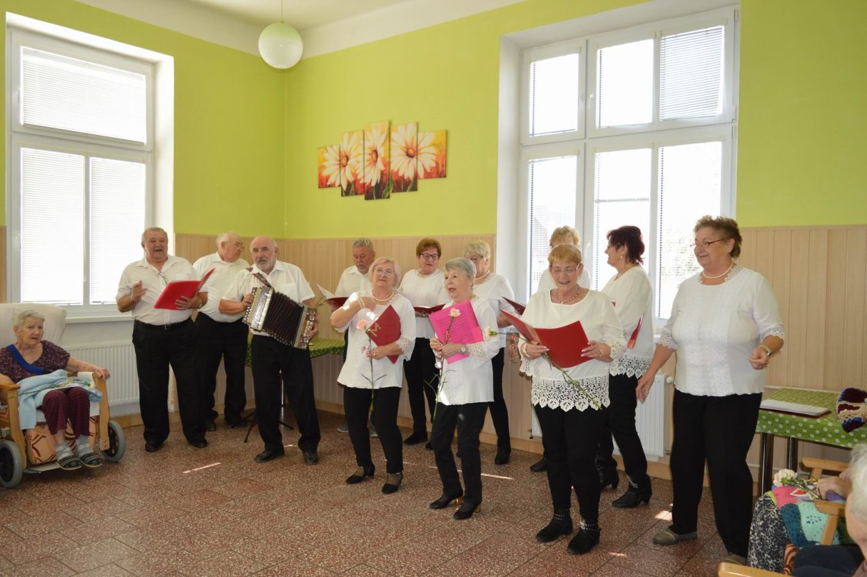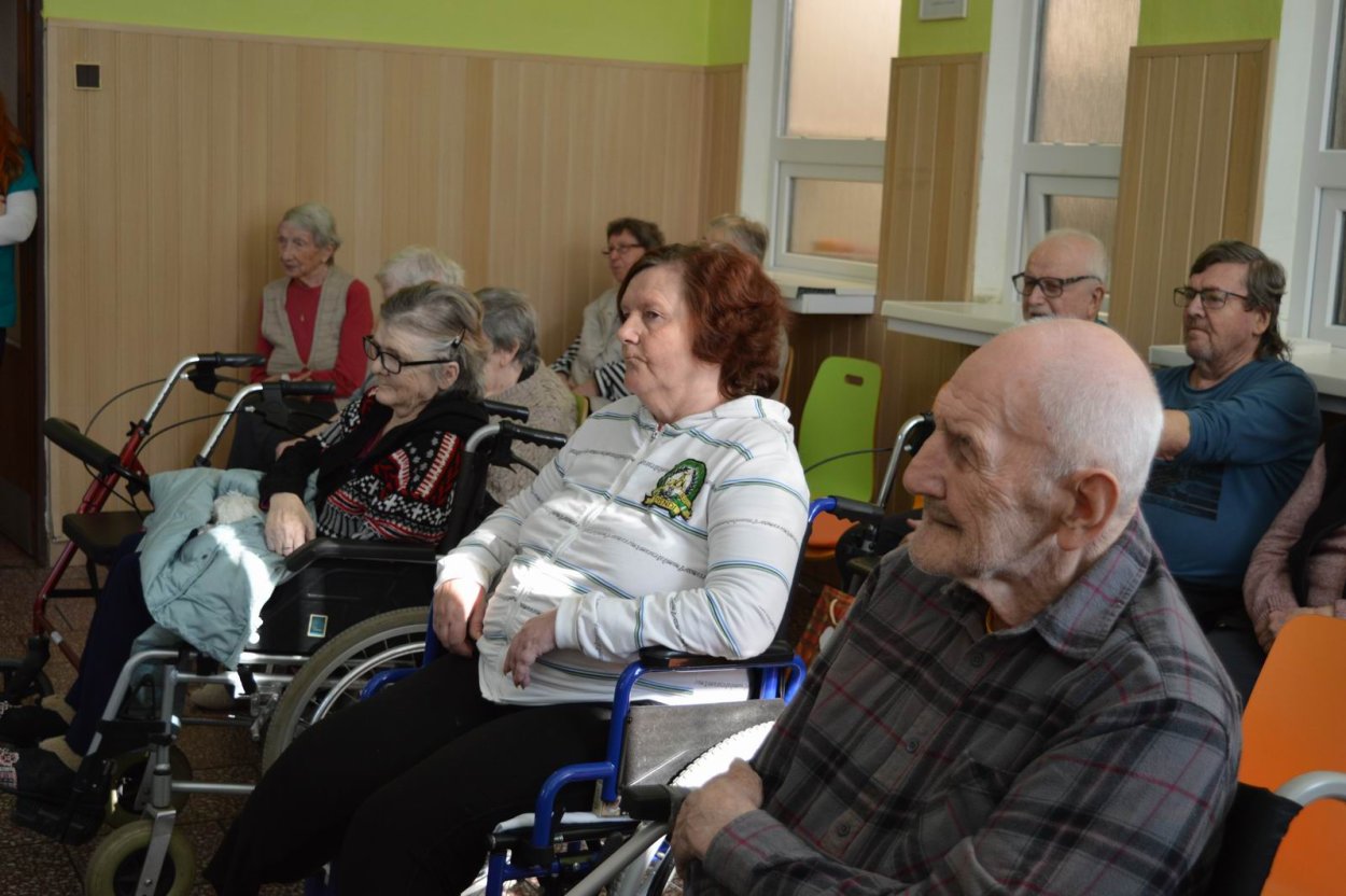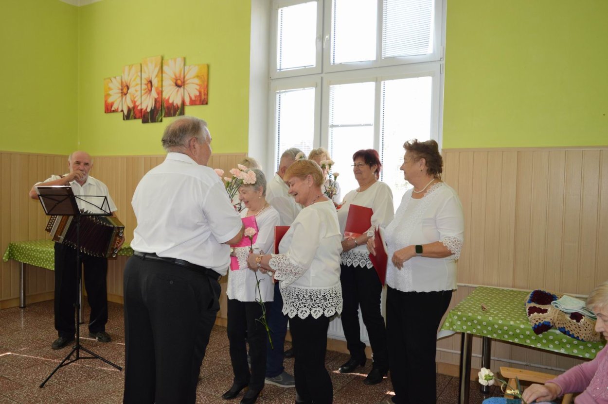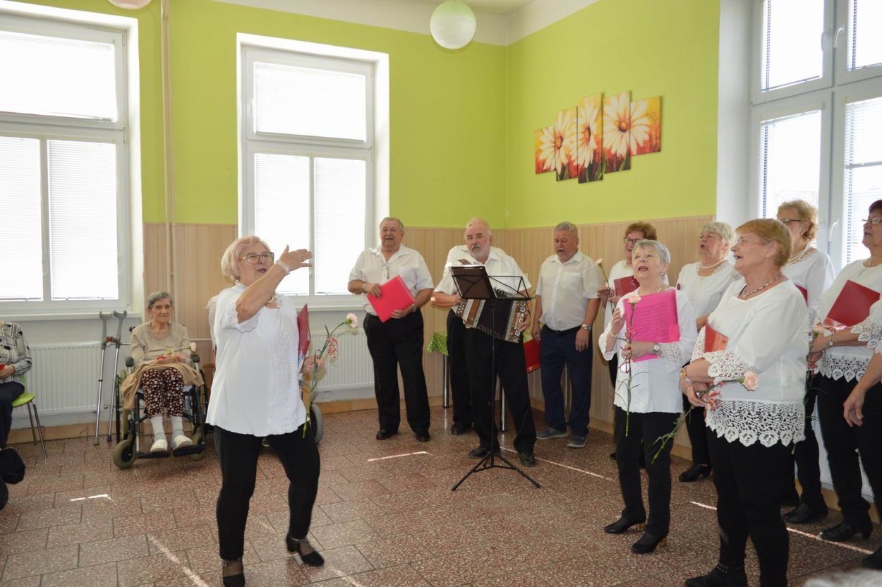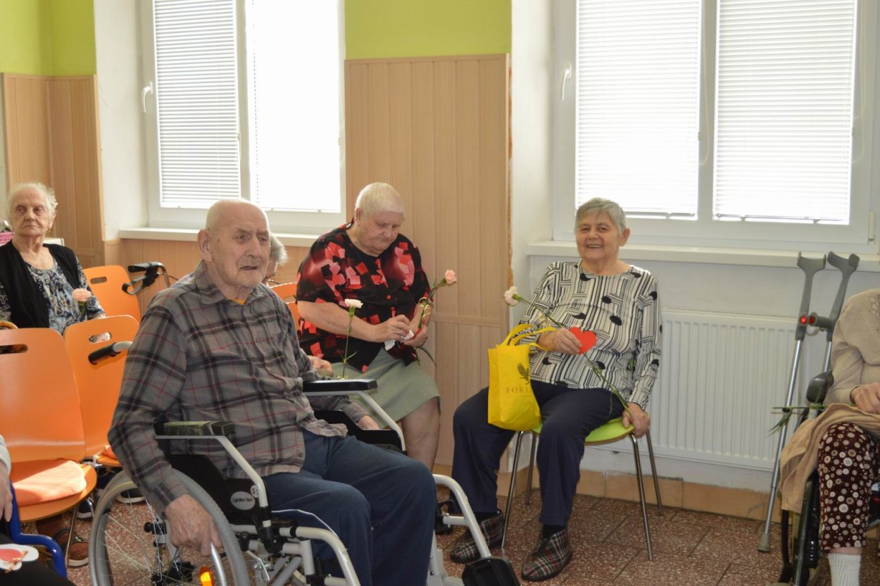 Aj tento rok sme si začiatkom marca v našom zariadení nezabudli pripomenúť krásny sviatok - Medzinárodný deň žien. Všetkých prítomných na úvod vystúpenia privítala a pozdravila vedúca sociálno-zdravotného úseku Martina. Pekným pásmom piesní a básní prišli v tento sviatočný deň pozdraviť našich klientov členovia spevokolu Fialôčka z Poltára. K spievaniu sa po krátkej chvíli pridali aj naše klientky a trošku sa v tanci vyzvŕtali aj aj pani Milka s Elenkou. Po speve a tanci sa chlapi zo spevokolu činili a všetkých prítomným klientkam aj členkám spevokolu ako prejav úcty odovzdali krásne karafiáty. Nezabudli sme ani na imobilné klientky, ktorým tiež Martina s inštruktorkou Jankou odovzdali kvietky v súkromí ich izieb. Bolo to veľmi milé a veselé stretnutie a posedenie so spevom, ktoré opäť vyčarilo na tvárach našich žien a aj všetkých prítomných krásne úsmevy.
