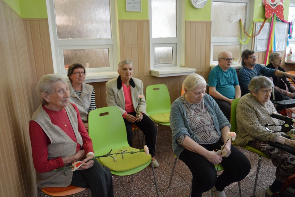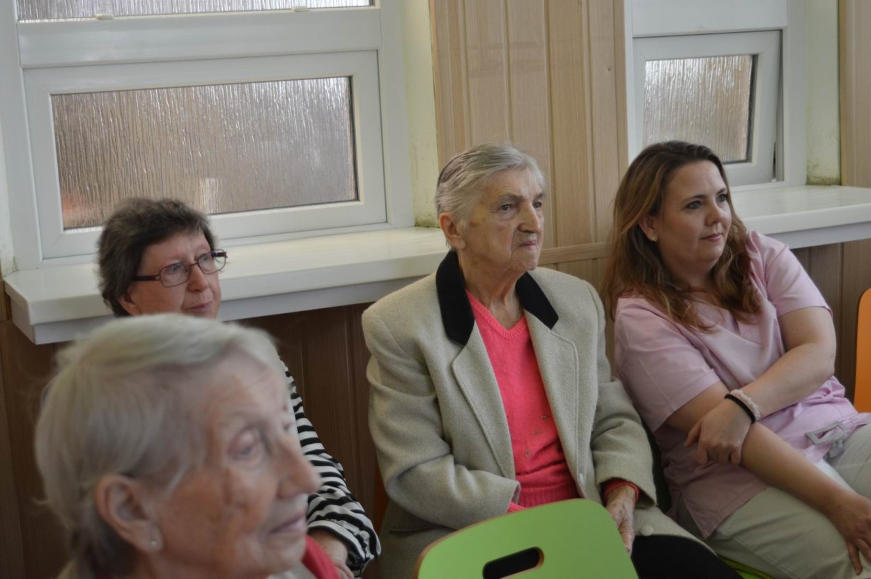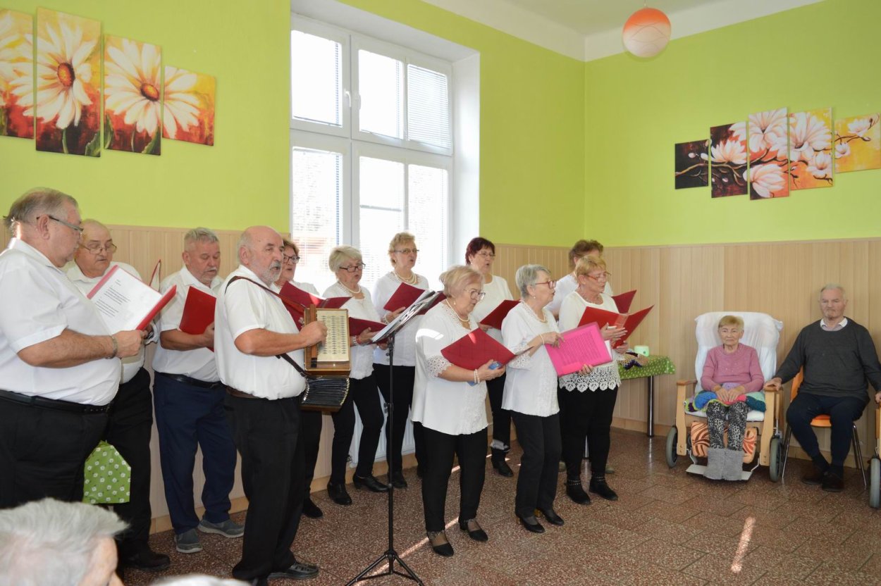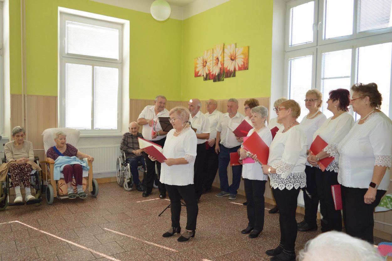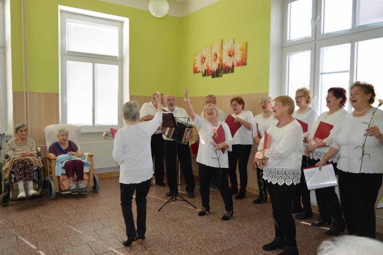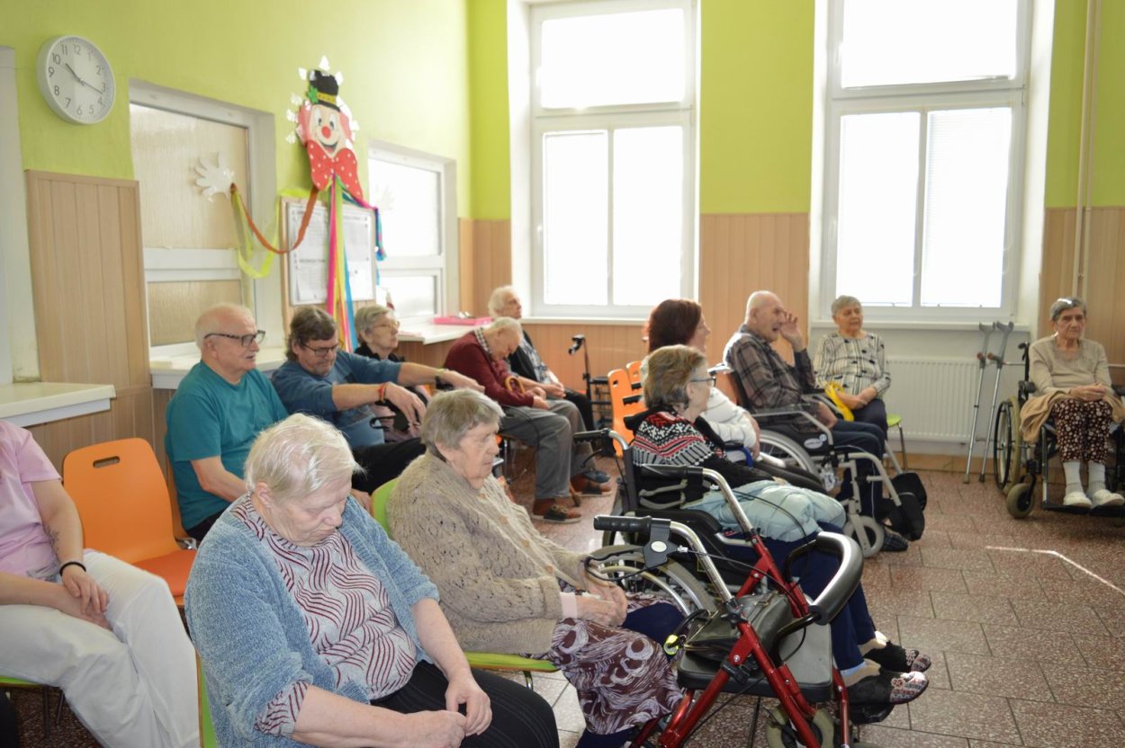 Aj tento rok sme si začiatkom marca v našom zariadení nezabudli pripomenúť krásny sviatok - Medzinárodný deň žien. Všetkých prítomných na úvod vystúpenia privítala a pozdravila vedúca sociálno-zdravotného úseku Martina. Pekným pásmom piesní a básní prišli v tento sviatočný deň pozdraviť našich klientov členovia spevokolu Fialôčka z Poltára. K spievaniu sa po krátkej chvíli pridali aj naše klientky a trošku sa v tanci vyzvŕtali aj aj pani Milka s Elenkou. Po speve a tanci sa chlapi zo spevokolu činili a všetkých prítomným klientkam aj členkám spevokolu ako prejav úcty odovzdali krásne karafiáty. Nezabudli sme ani na imobilné klientky, ktorým tiež Martina s inštruktorkou Jankou odovzdali kvietky v súkromí ich izieb. Bolo to veľmi milé a veselé stretnutie a posedenie so spevom, ktoré opäť vyčarilo na tvárach našich žien a aj všetkých prítomných krásne úsmevy.