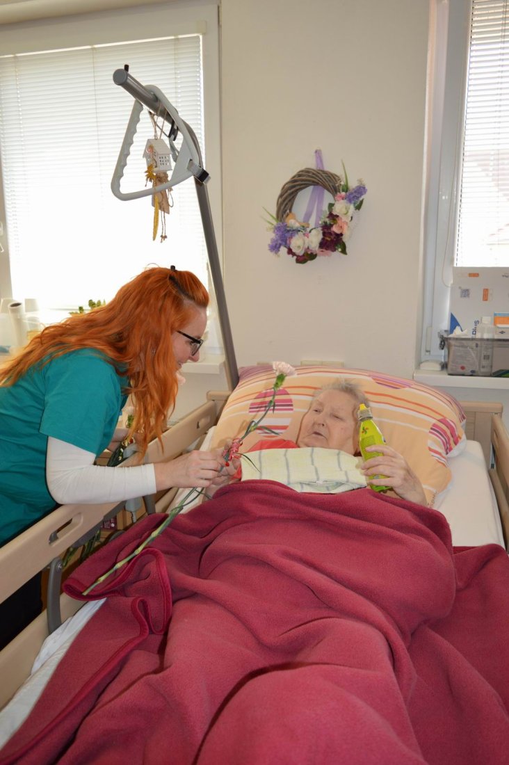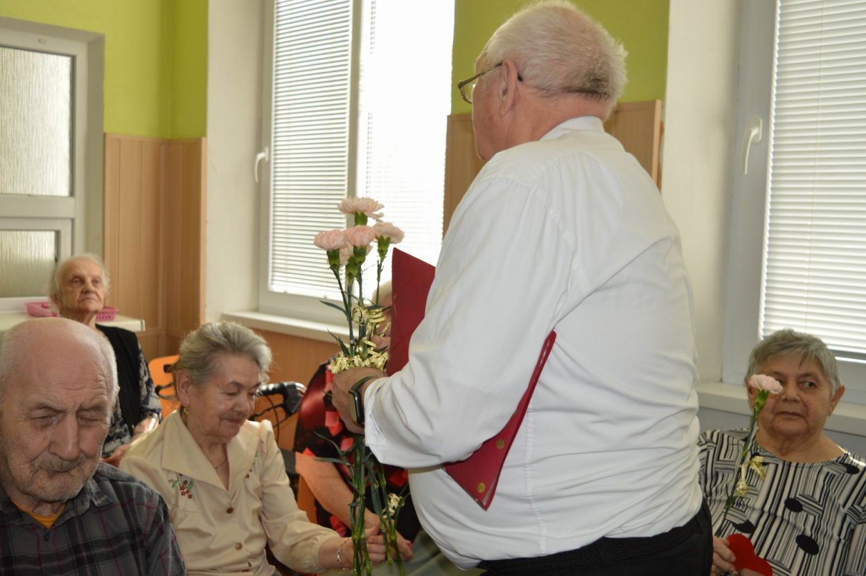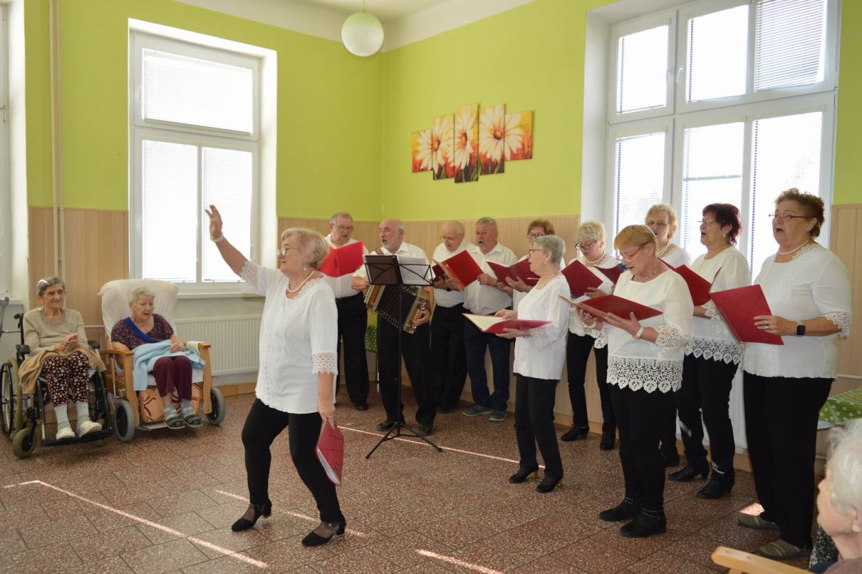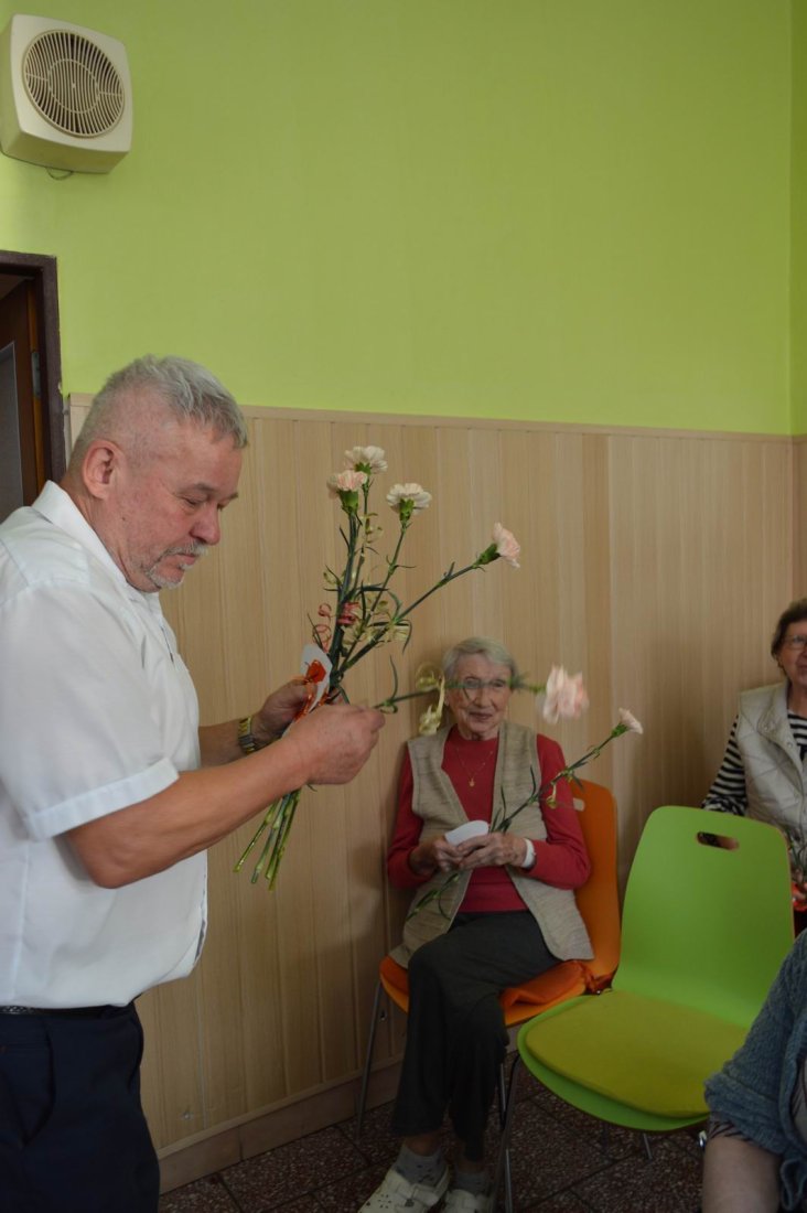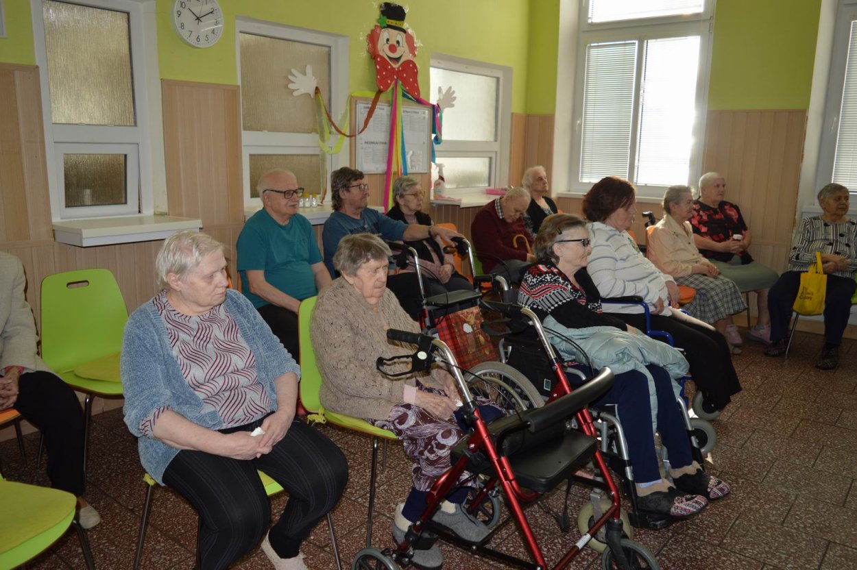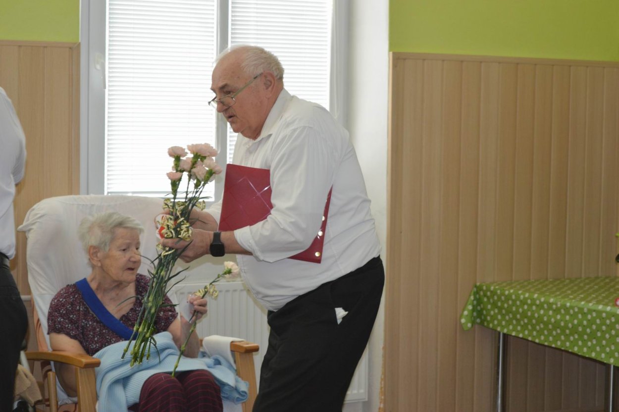 Aj tento rok sme si začiatkom marca v našom zariadení nezabudli pripomenúť krásny sviatok - Medzinárodný deň žien. Všetkých prítomných na úvod vystúpenia privítala a pozdravila vedúca sociálno-zdravotného úseku Martina. Pekným pásmom piesní a básní prišli v tento sviatočný deň pozdraviť našich klientov členovia spevokolu Fialôčka z Poltára. K spievaniu sa po krátkej chvíli pridali aj naše klientky a trošku sa v tanci vyzvŕtali aj aj pani Milka s Elenkou. Po speve a tanci sa chlapi zo spevokolu činili a všetkých prítomným klientkam aj členkám spevokolu ako prejav úcty odovzdali krásne karafiáty. Nezabudli sme ani na imobilné klientky, ktorým tiež Martina s inštruktorkou Jankou odovzdali kvietky v súkromí ich izieb. Bolo to veľmi milé a veselé stretnutie a posedenie so spevom, ktoré opäť vyčarilo na tvárach našich žien a aj všetkých prítomných krásne úsmevy.