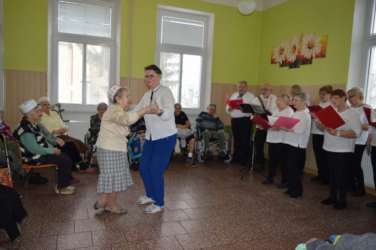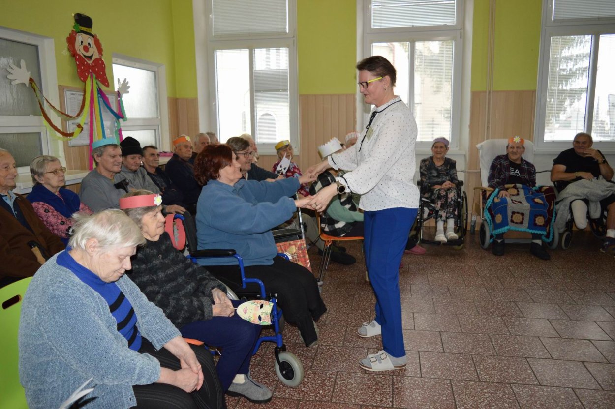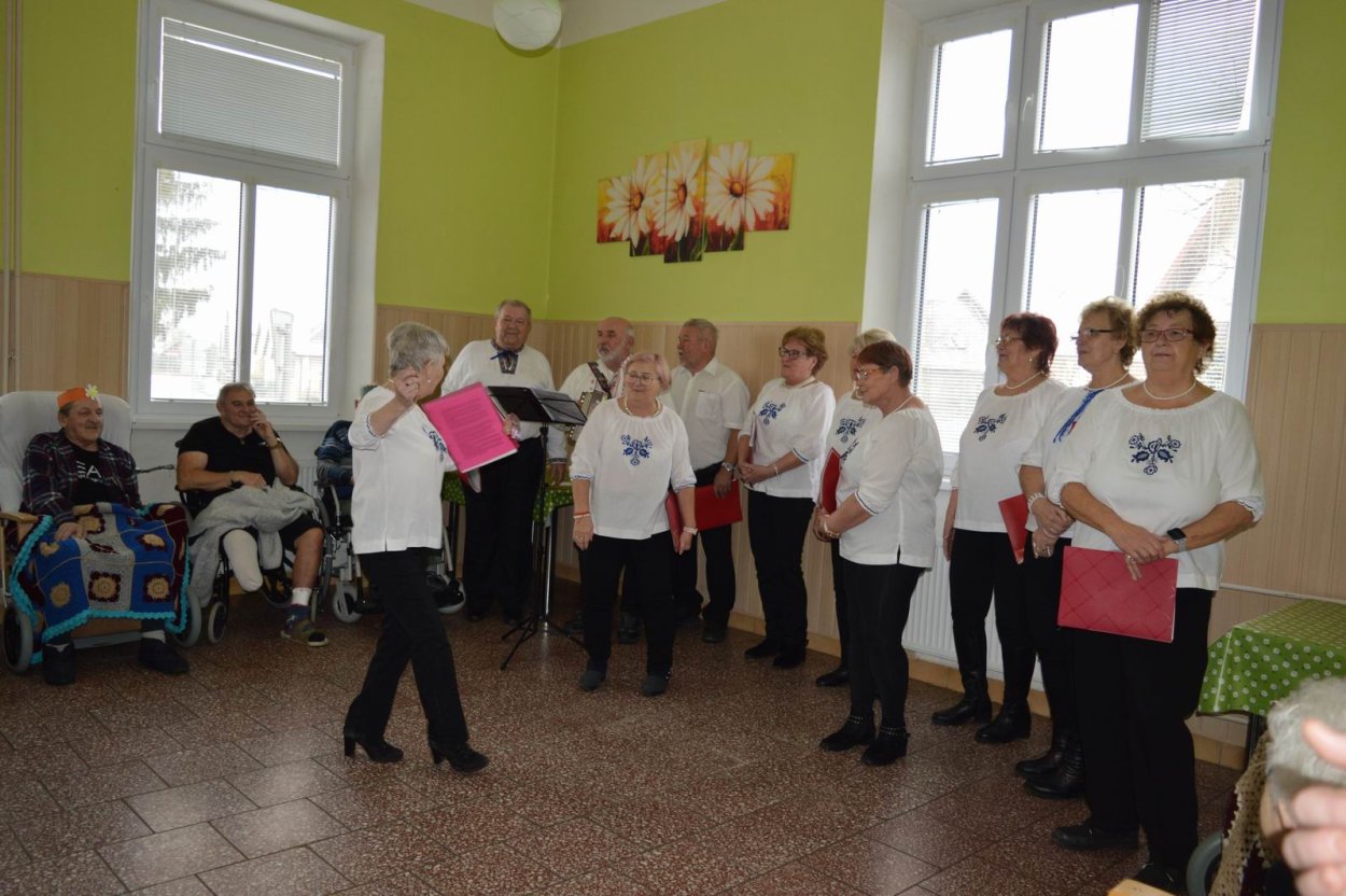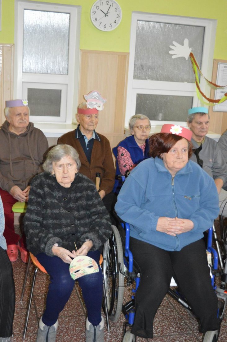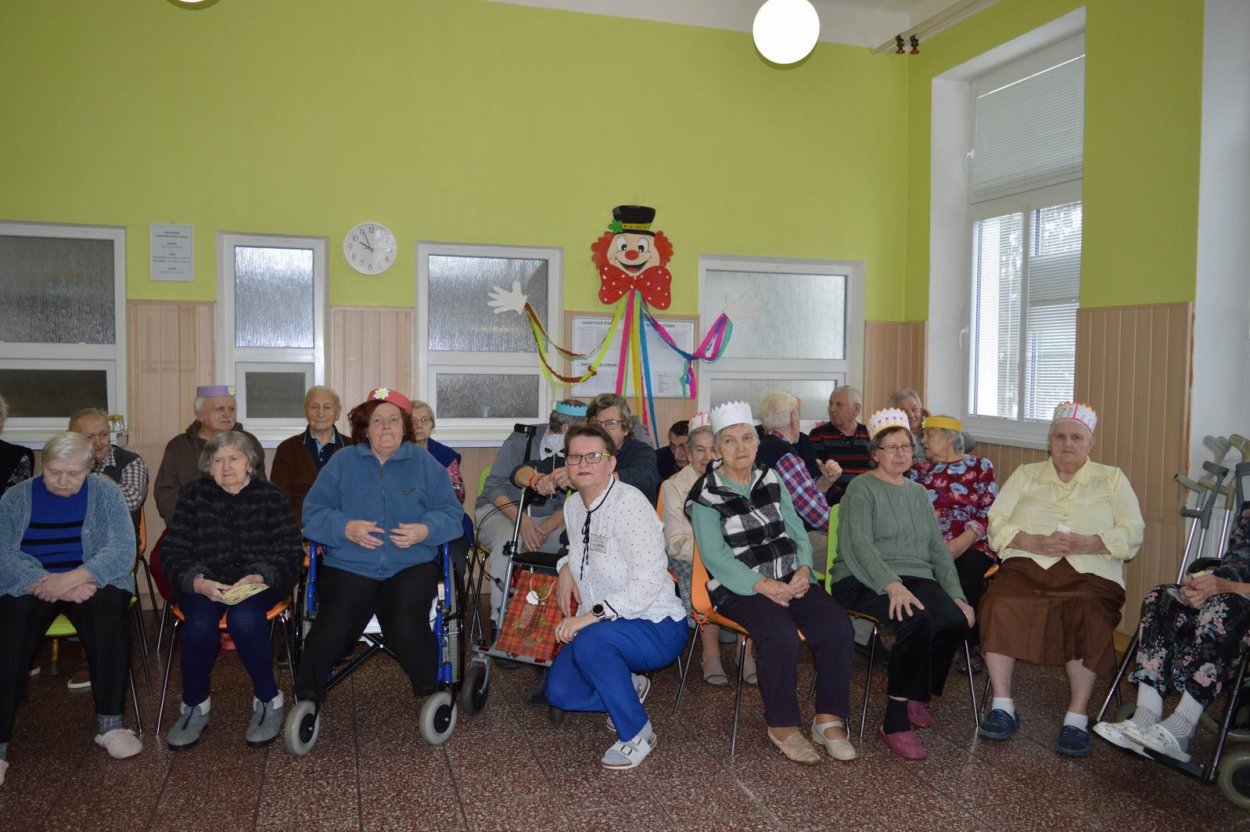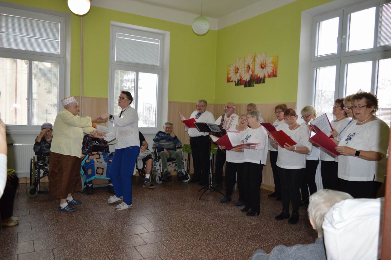 „Fašiangy, Turíce, Veľká noc príde, kto nemá kožúška zima mu bude....“ Toto piesňou sme začali naše fašiangové stretnutie. Naše pozvanie prijali a o dobrú náladu sa postarali členovia spevokolu Fialôčka z Poltára. Sociálna pracovníčka Anka v príhovore spomenula zvyky a tradície, ktoré boli typické pre toto veselé obdobie roka a ako fašiangy prebiehali kedysi na dedinách a v mestách. Našich klientov milým slovom pozdravila aj vedúca spevokolu pani Mária Királyová. A potom za zvukov heligónky spievali nielen členovia spevokolu, ale aj naši klienti, ktorí si už vopred pripravili na toto posedenie fašiangové korunky a masky. Neostalo iba pri speve, niektorí si veru aj zatancovali. Neskôr hral heligonkár pesničky podľa želania klientov a my ostatní sme sa so spevom radi pridali. Na záver stretnutia sme si pripomenuli koniec fašiangov veršom „Fašiangy sa krátia, už sa nenavrátia, staré dievky plačú, že sa nevyskáču...“