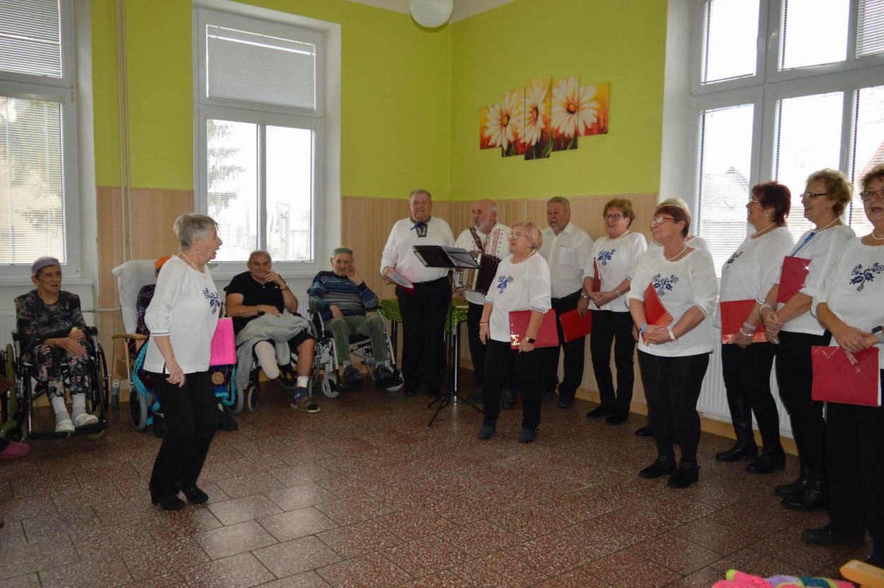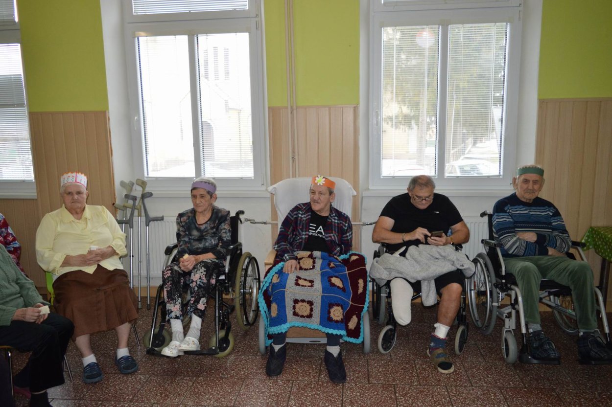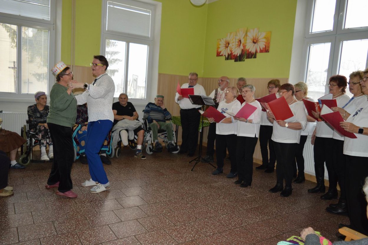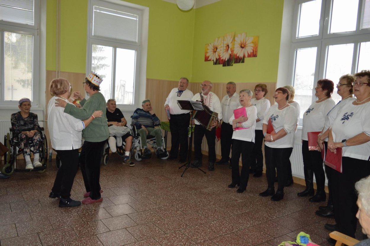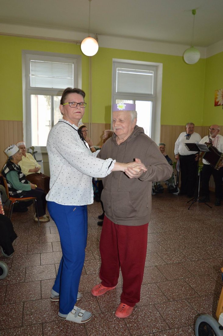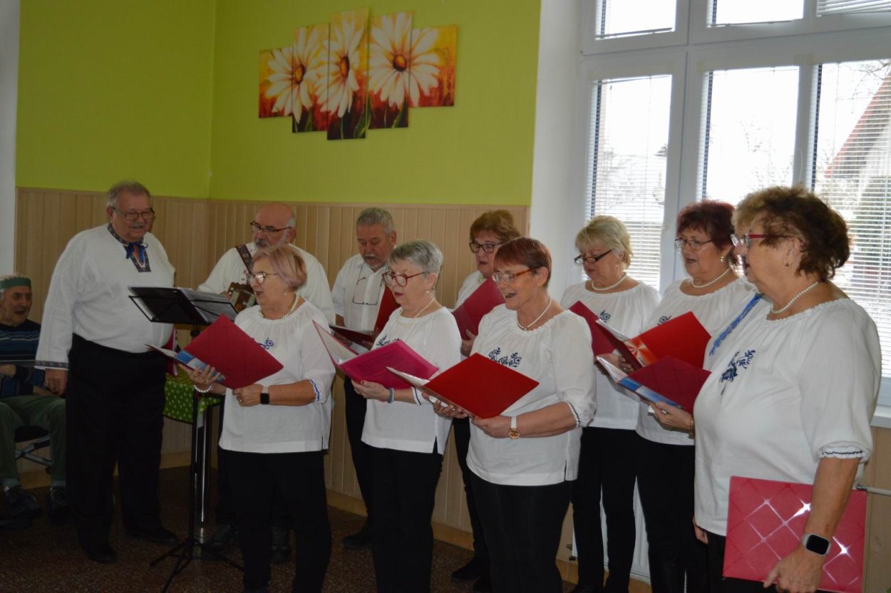 „Fašiangy, Turíce, Veľká noc príde, kto nemá kožúška zima mu bude....“ Toto piesňou sme začali naše fašiangové stretnutie. Naše pozvanie prijali a o dobrú náladu sa postarali členovia spevokolu Fialôčka z Poltára. Sociálna pracovníčka Anka v príhovore spomenula zvyky a tradície, ktoré boli typické pre toto veselé obdobie roka a ako fašiangy prebiehali kedysi na dedinách a v mestách. Našich klientov milým slovom pozdravila aj vedúca spevokolu pani Mária Királyová. A potom za zvukov heligónky spievali nielen členovia spevokolu, ale aj naši klienti, ktorí si už vopred pripravili na toto posedenie fašiangové korunky a masky. Neostalo iba pri speve, niektorí si veru aj zatancovali. Neskôr hral heligonkár pesničky podľa želania klientov a my ostatní sme sa so spevom radi pridali. Na záver stretnutia sme si pripomenuli koniec fašiangov veršom „Fašiangy sa krátia, už sa nenavrátia, staré dievky plačú, že sa nevyskáču...“