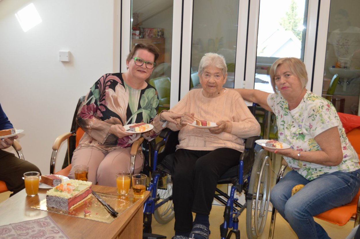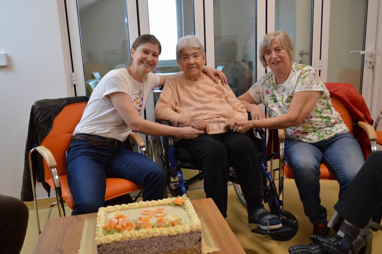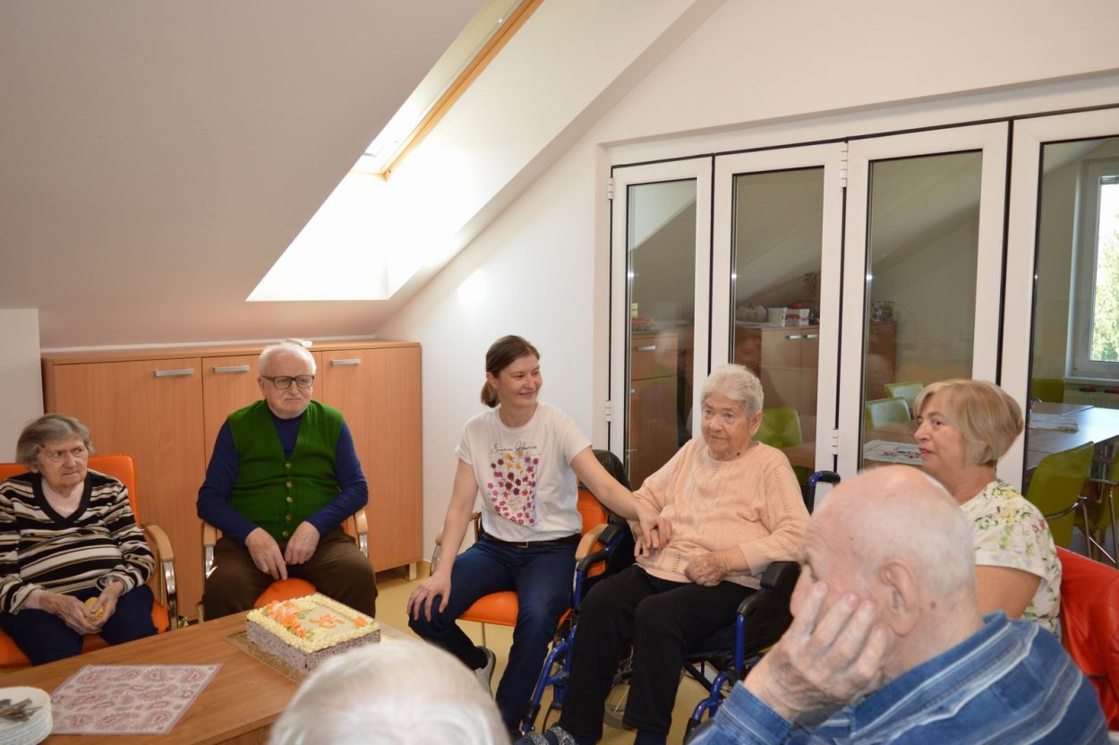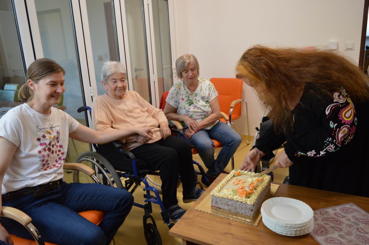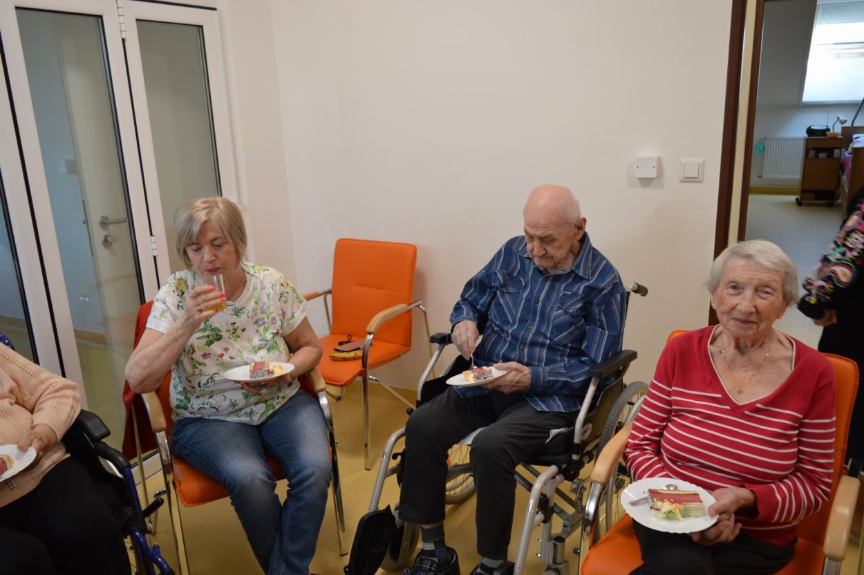 V polovici apríla sme v našom zariadení opäť oslavovali, pretože sa pani Anička dožila úctyhodných 95.narodenín. Narodeninovú oslavu pani Aničke spoločne zorganizovali jej dcéra s vnučkou žijúce v Rakúsku za asistencie sociálnej pracovníčky Anky. Pani Anička pozvala na malé narodeninové posedenie aj svojho brata Rudka, ktorý v deň stretnutia oslavoval svoje meniny. Pozvanie prijali aj priateľky zo zariadenia a vedúca sociálno-zdravotného úseku. Na úvod spoločného narodeninového posedenia milým slovom aj vinšom sa oslávenkyni prihovorila sociálna pracovníčka Anka. Dcéra s vnučkou priniesli oslávenkyni výbornú punčovú tortu, ktorá nielen fantasticky vyzerala, ale tak aj všetkým chutila.