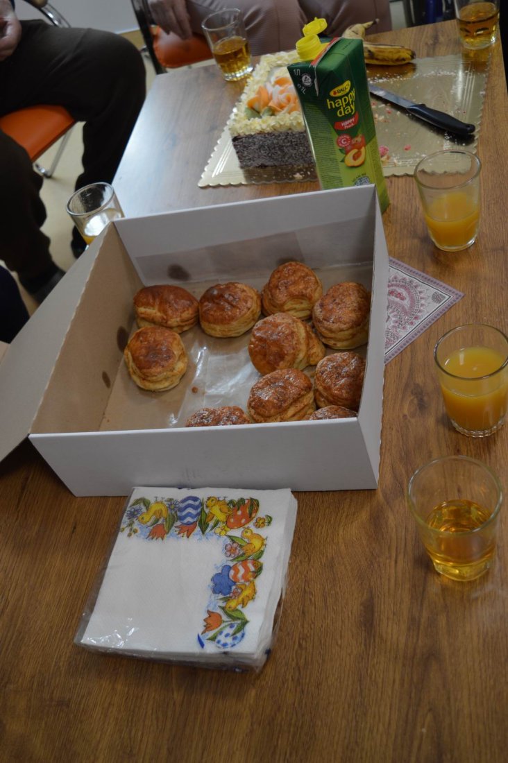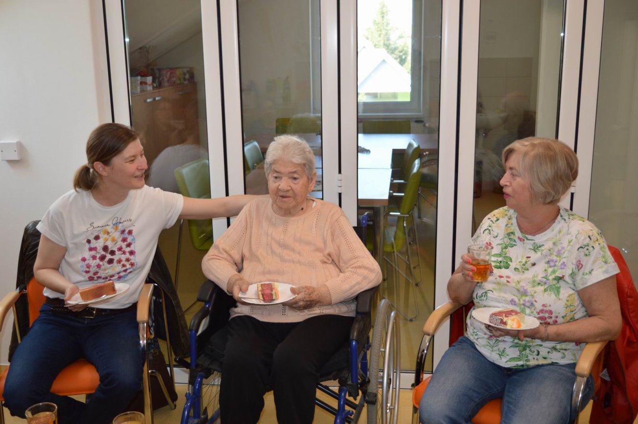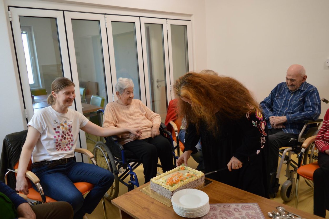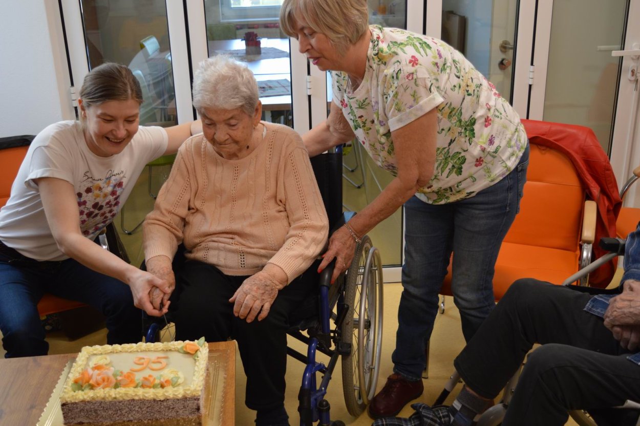 V polovici apríla sme v našom zariadení opäť oslavovali, pretože sa pani Anička dožila úctyhodných 95.narodenín. Narodeninovú oslavu pani Aničke spoločne zorganizovali jej dcéra s vnučkou žijúce v Rakúsku za asistencie sociálnej pracovníčky Anky. Pani Anička pozvala na malé narodeninové posedenie aj svojho brata Rudka, ktorý v deň stretnutia oslavoval svoje meniny. Pozvanie prijali aj priateľky zo zariadenia a vedúca sociálno-zdravotného úseku. Na úvod spoločného narodeninového posedenia milým slovom aj vinšom sa oslávenkyni prihovorila sociálna pracovníčka Anka. Dcéra s vnučkou priniesli oslávenkyni výbornú punčovú tortu, ktorá nielen fantasticky vyzerala, ale tak aj všetkým chutila.