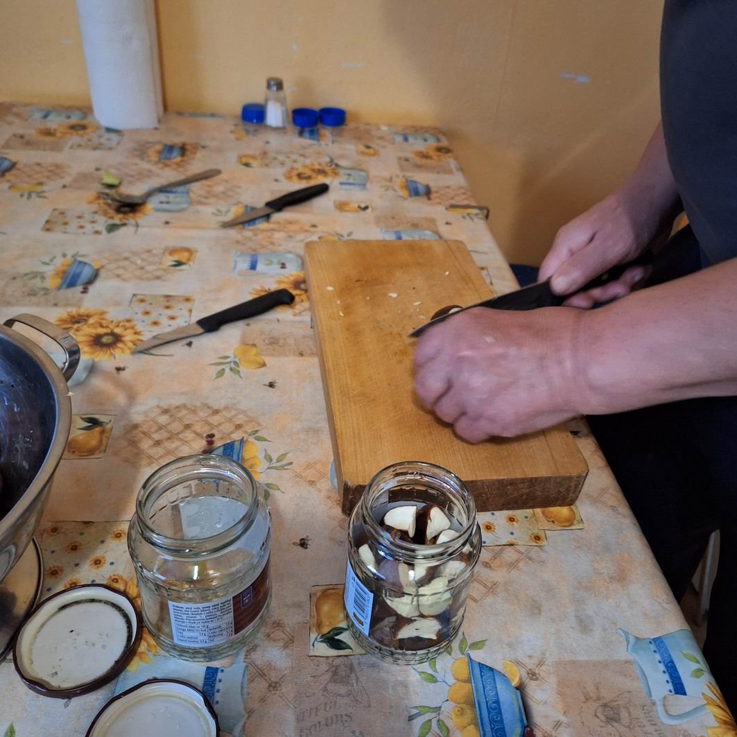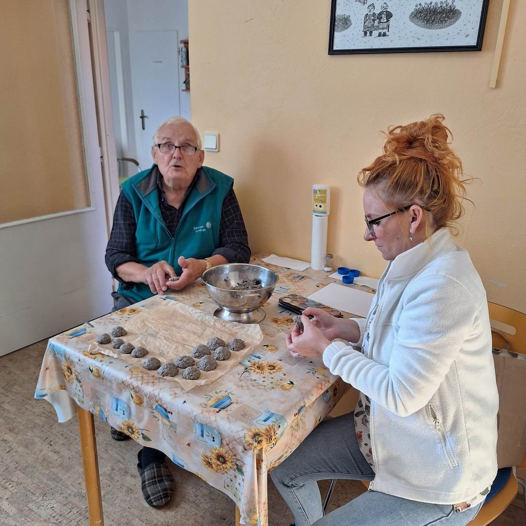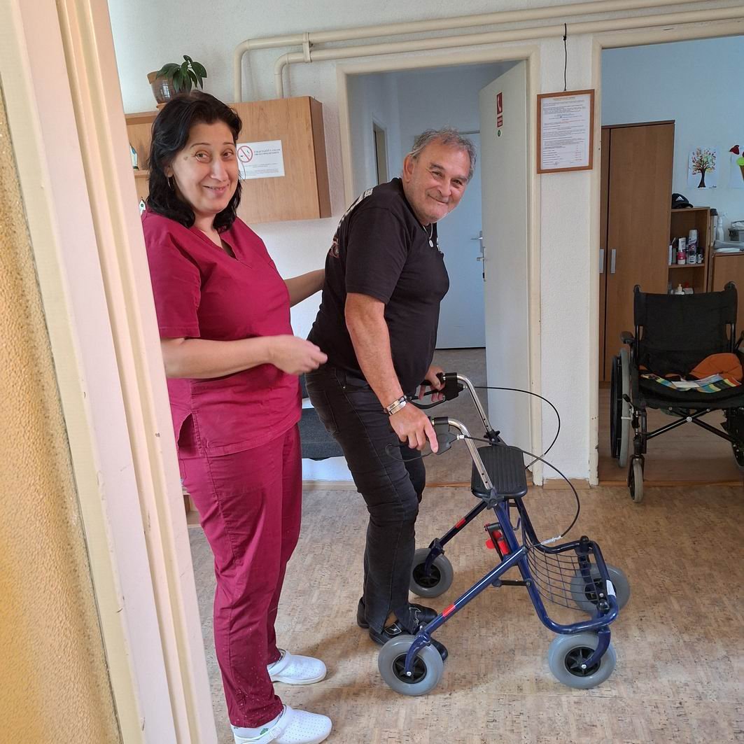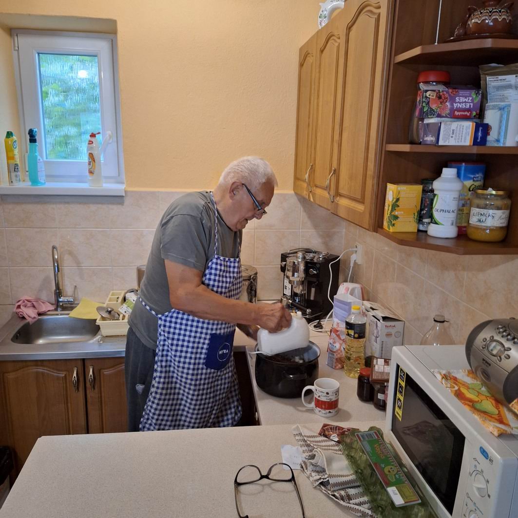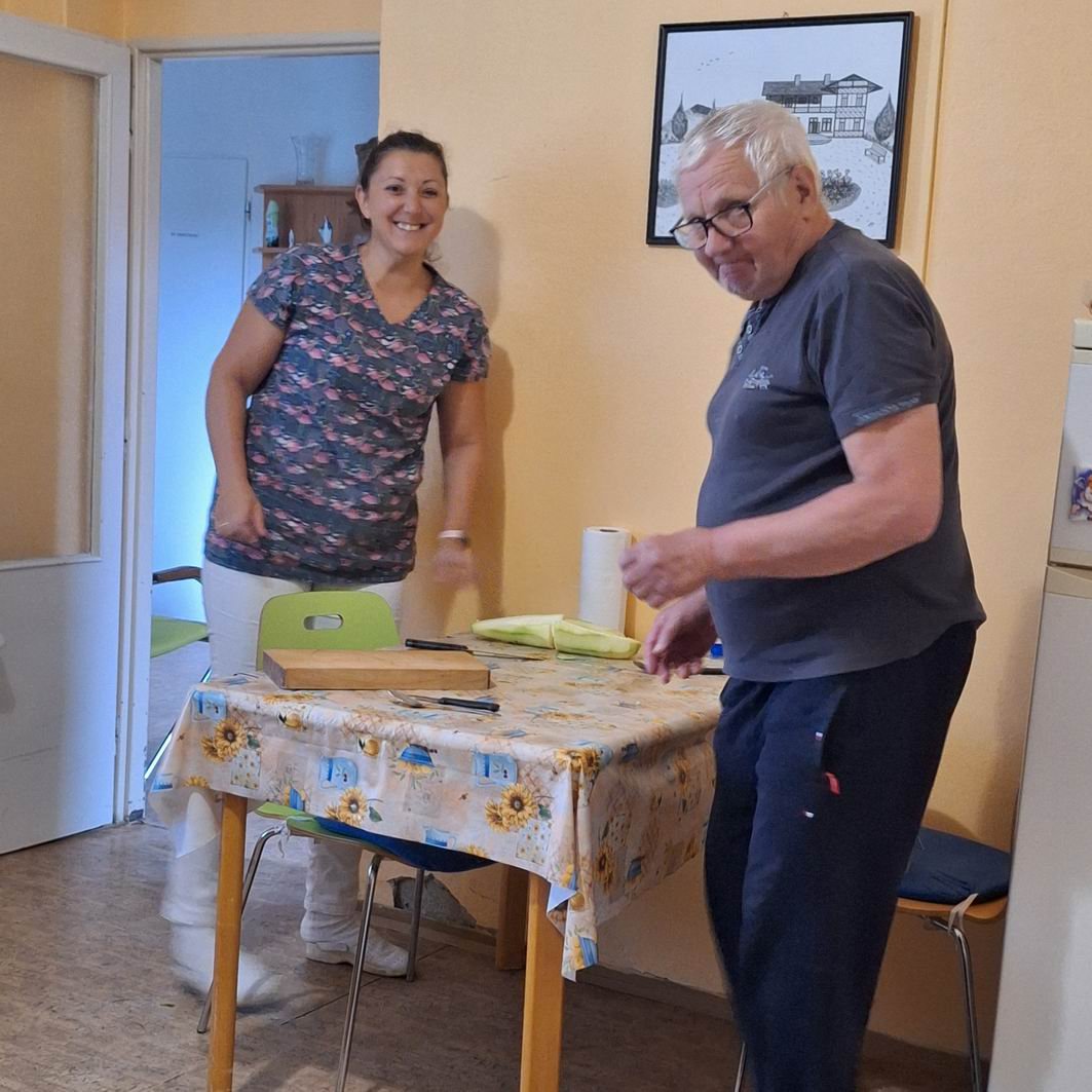 Aj na prevádzke v Hrnčiarskych Zalužanoch sa naši klienti radi zapájajú do rôznych denných aktivít. Podľa vzájomnej dohody klientov so službu konajúcou opatrovateľkou si vždy na konkrétny deň sami zvolia nejakú aktivitu, ktorá im najviac vyhovuje. Niekedy sa na aktivitách zúčastnia jednotlivo, niekedy sa zasa zapoja všetci, prípadne viacerí z klientov. Aj teraz na jeseň mali naši klienti plné ruky práce. Jeden deň piekli cuketové placky, inokedy zasa plný plech zákuskov s čokoládovou polevou. Potom pomáhali našej inštruktorke Janke s jesennou výzdobou. Ale boli aj dni, kedy sa im nič nechcelo robiť, a tak len sedeli a debatovali. No občas dobre padne aj nejaká pohybová aktivita. Pán Gabo bol na seba hrdý, keď aj vďaka povzbudzujúcim slovám opatrovateľky zvládol nácvik chôdze v interiéri nášho domčeka. Alebo sa za priaznivého počasia všetci klienti s doprovodom vyberú na spoločnú prechádzku do parku v centre obce. Pri týchto spoločných aktivitách je vždy dobrá nálada a vtedy aj akosi rýchlejšie ubieha čas.