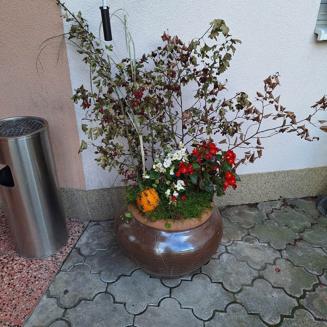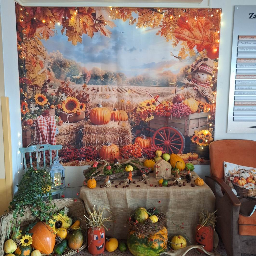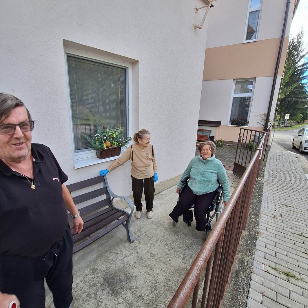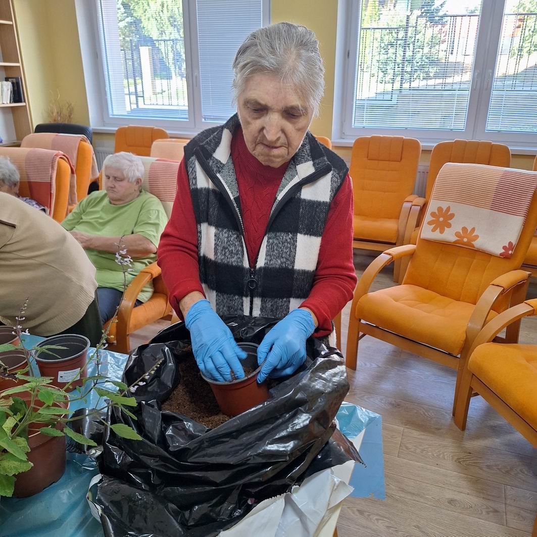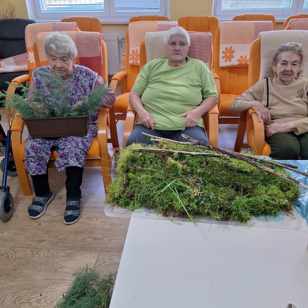 Jeseň pani bohatá, farbí listy dozlata. Viaceré naše seniorky si ešte stále pamätajú rôzne básničky o jeseni, ktoré sa kedysi pomáhali učiť svojim vnúčatám. Jeseň sa asi každému z nás spája s pestrosťou farieb v prírode. A aj naši seniori si chceli spestriť interiér i exteriér v našom zariadení, tak si dohodli spoločnú pracovnú aktivitu s našou novou inštruktorkou sociálnej rehabilitácie Jankou. Janka všetko pozháňala, nachystala a naše ženy už potom sadili, ukladali, aranžovali. Aj chlapi sa k nim pridali, niečo prichytili, niečo preniesli a spoločnými silami a hlavne s úsmevom na tvári skrášlili priestor pred vchodom do budovy i vstupný vestibul. Bolo pri tom veľa smiechu – chlapi radili, ženy im oponovali, no nasmiali sme sa jedna radosť. A výsledok určite stojí za to!