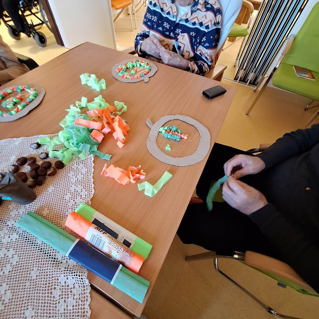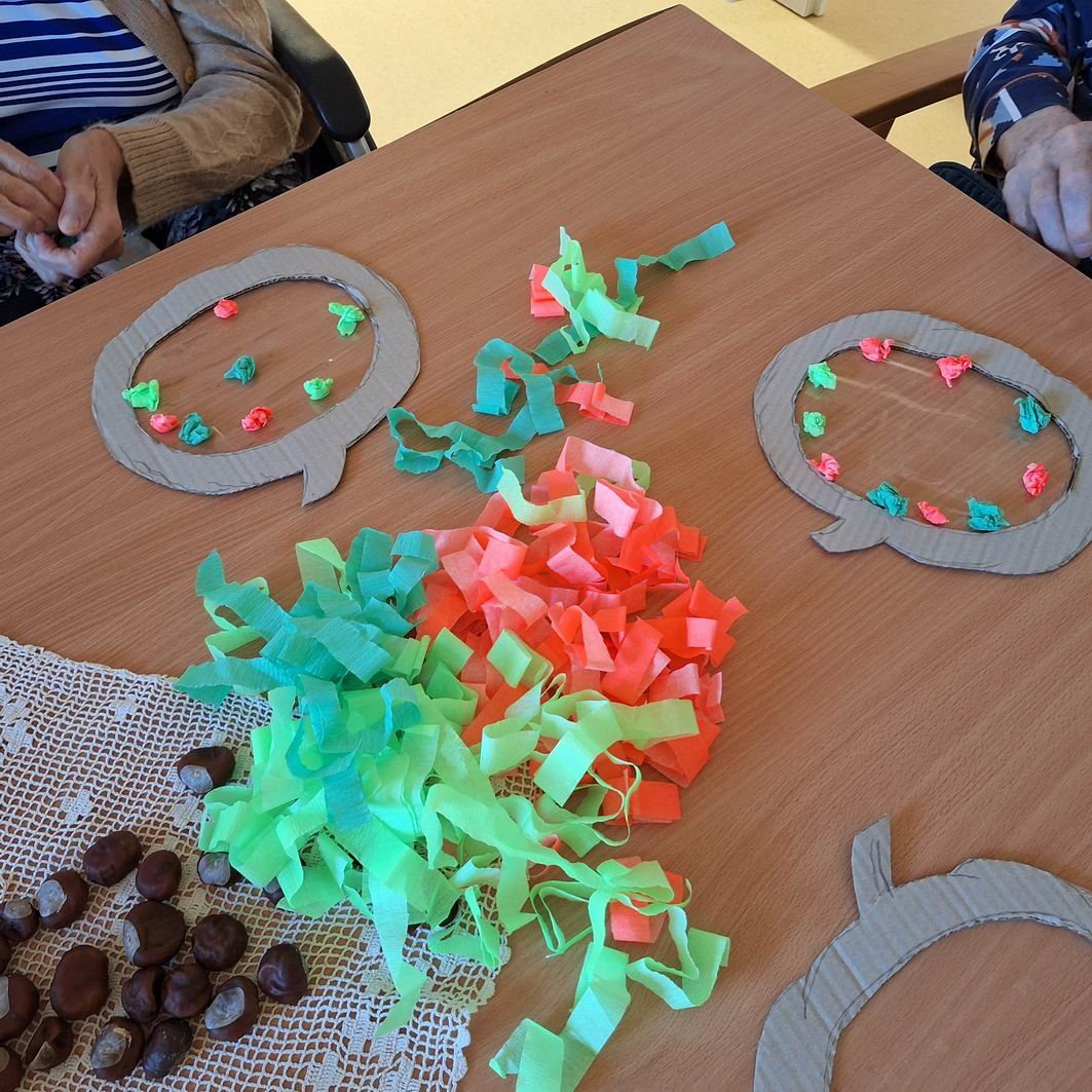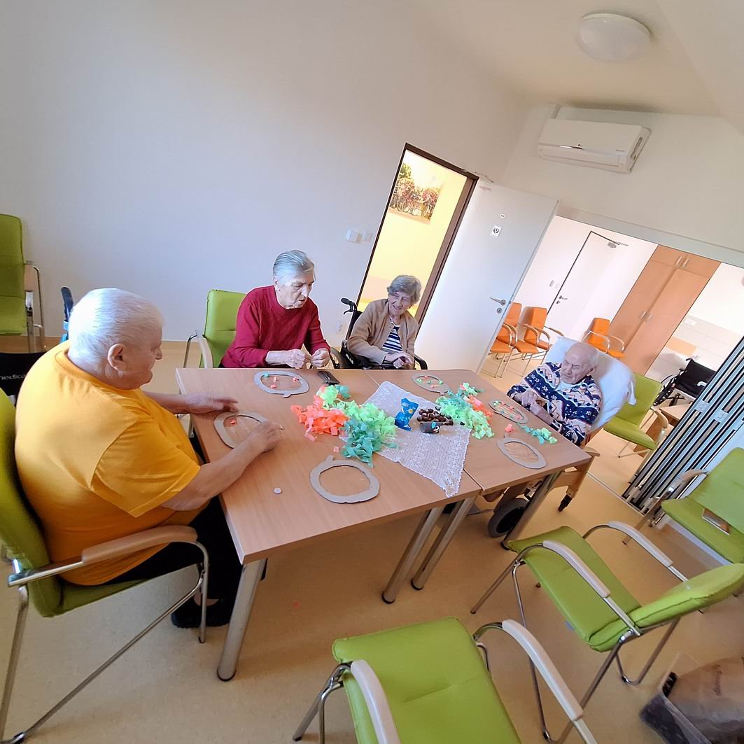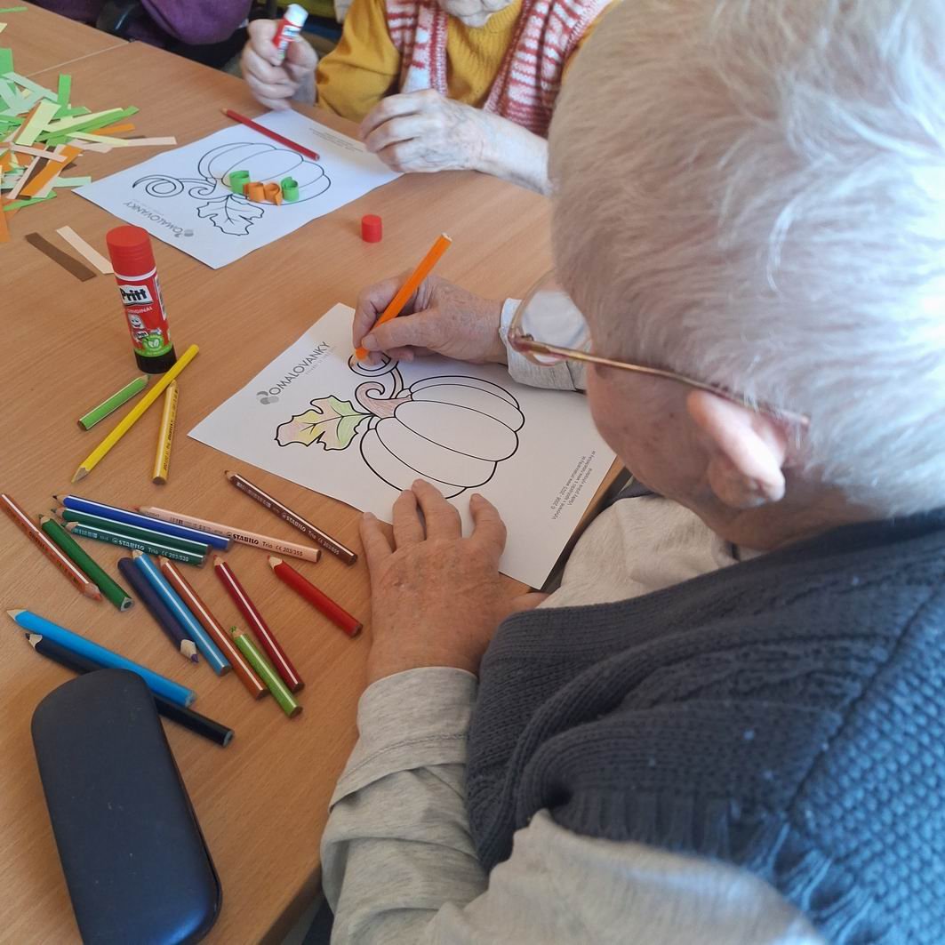 Obľúbenou aktivitou v našom zariadení sú aj tvorivé dielne. V rámci niektorých tvorivých dielní pracovali naši klienti hlavne s rôznym druhom papiera – hrubým kartón, s farebným papierom, krepovým papierom. A potom už len maľovali, strihali, šúľali, zatáčali, lepili. Výsledkom boli papierové tekvičky, ktoré sme si vystavili vo vstupnom vestibule. Iný deň zasa prekreslené tekvičky vymaľovali, ale taktiež vyzdobili zatočeným farebným papierom. Tieto obrázky sme zasa mali vystavené na stenách pri schodišti. A naši klienti sa už dnes tešia, čo budú zaujímavé vytvárať na budúcom tvorivom stretnutí. A my ostatní sme už tiež zvedaví a tešíme na na nové výtvory.