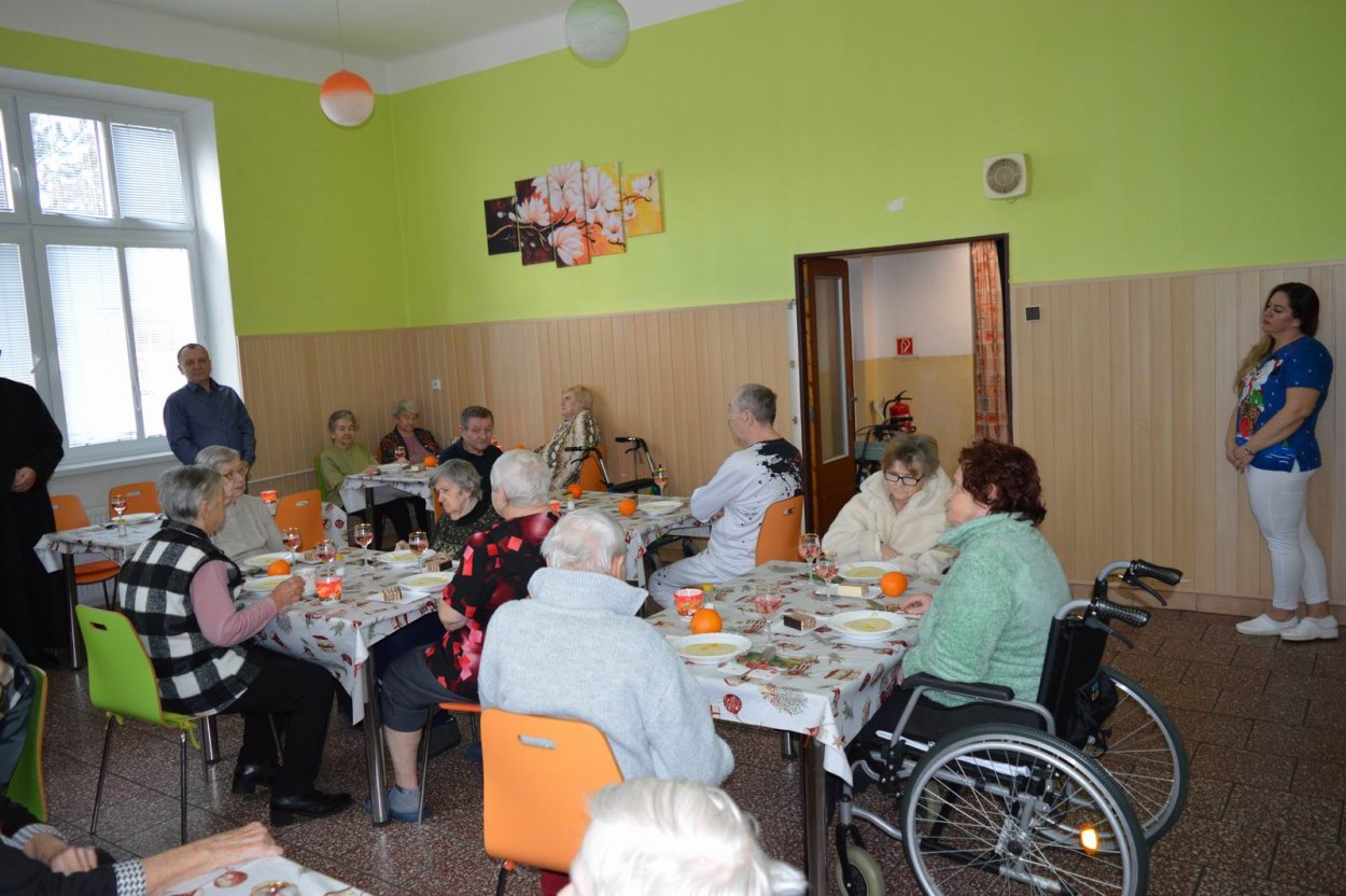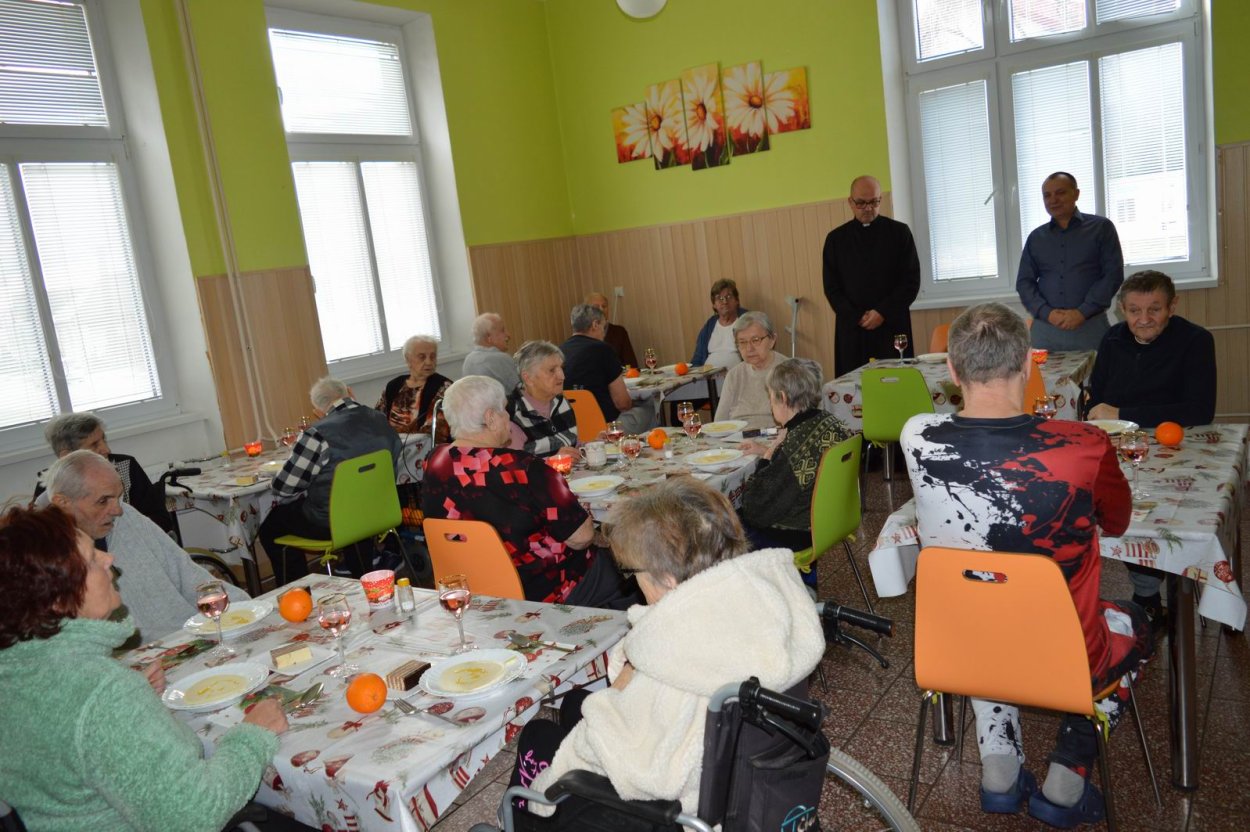 Vianoce sú sviatky pokoja, lásky, mieru a nádeje, kedy sa schádza k spoločnému stolu celá rodina. Advent sa končí a začína sa slávenie Vianoc. V našom zariadení sme sa aj my práve na Štedrý deň zišli v jedálni pri slávnostne prestretom stole. Vianoce však nepredstavujú iba hojnosť a darčeky, ale Vianoce sú posolstvom nádeje a majú veľký duchovný rozmer. Kresťanský a duchovný rozmer tohto slávnostného dňa nám pomohol naplniť pán farár Jožko, ktorý je rodákom z našej obce a rád sa sem vracia k svojej rodine. Jeho milé a povzbudivé slová pohladili dušu určite každého nášho klienta.
