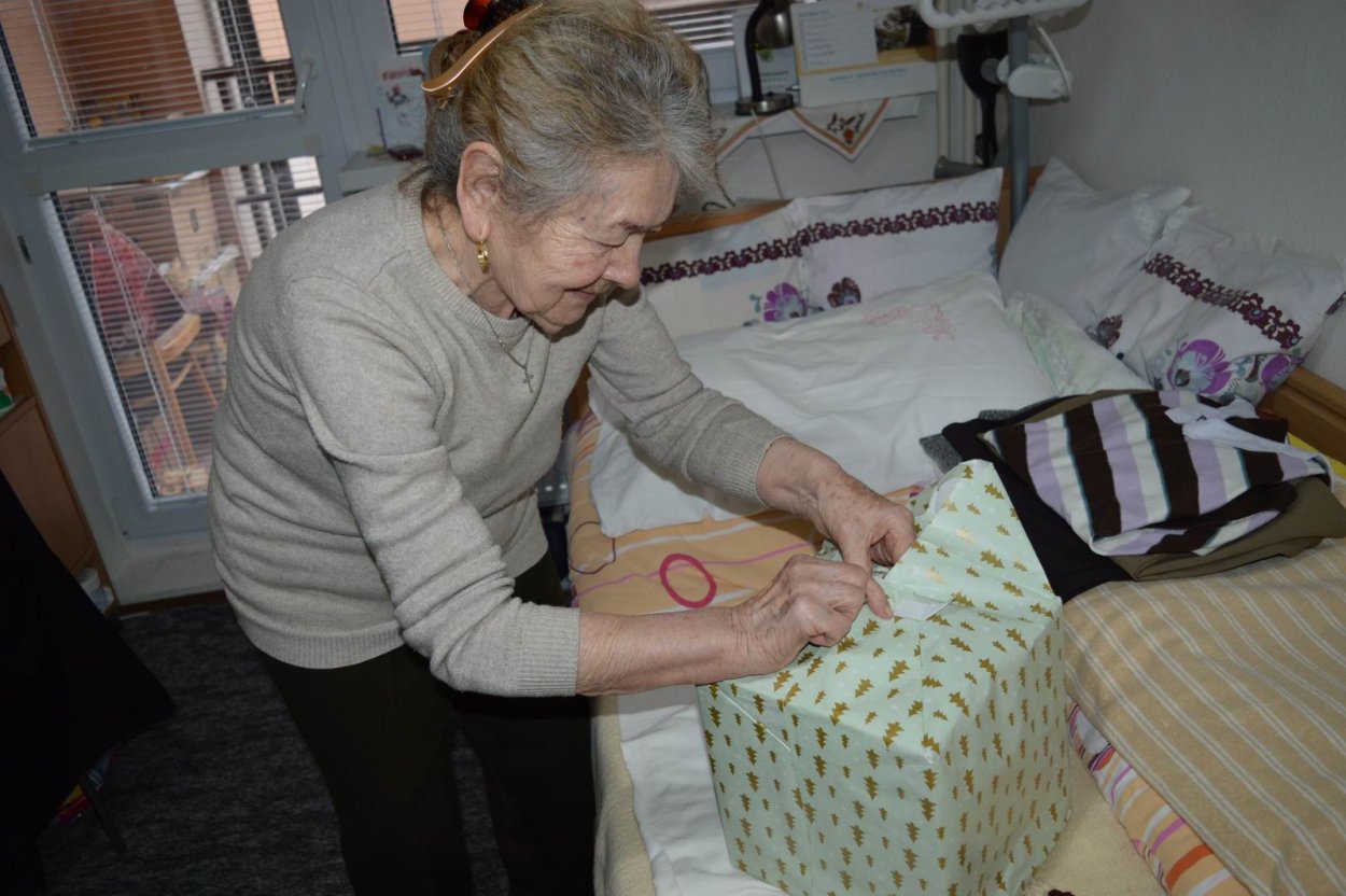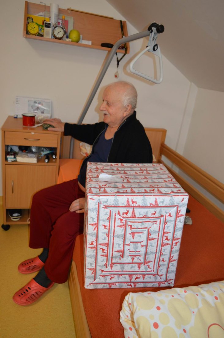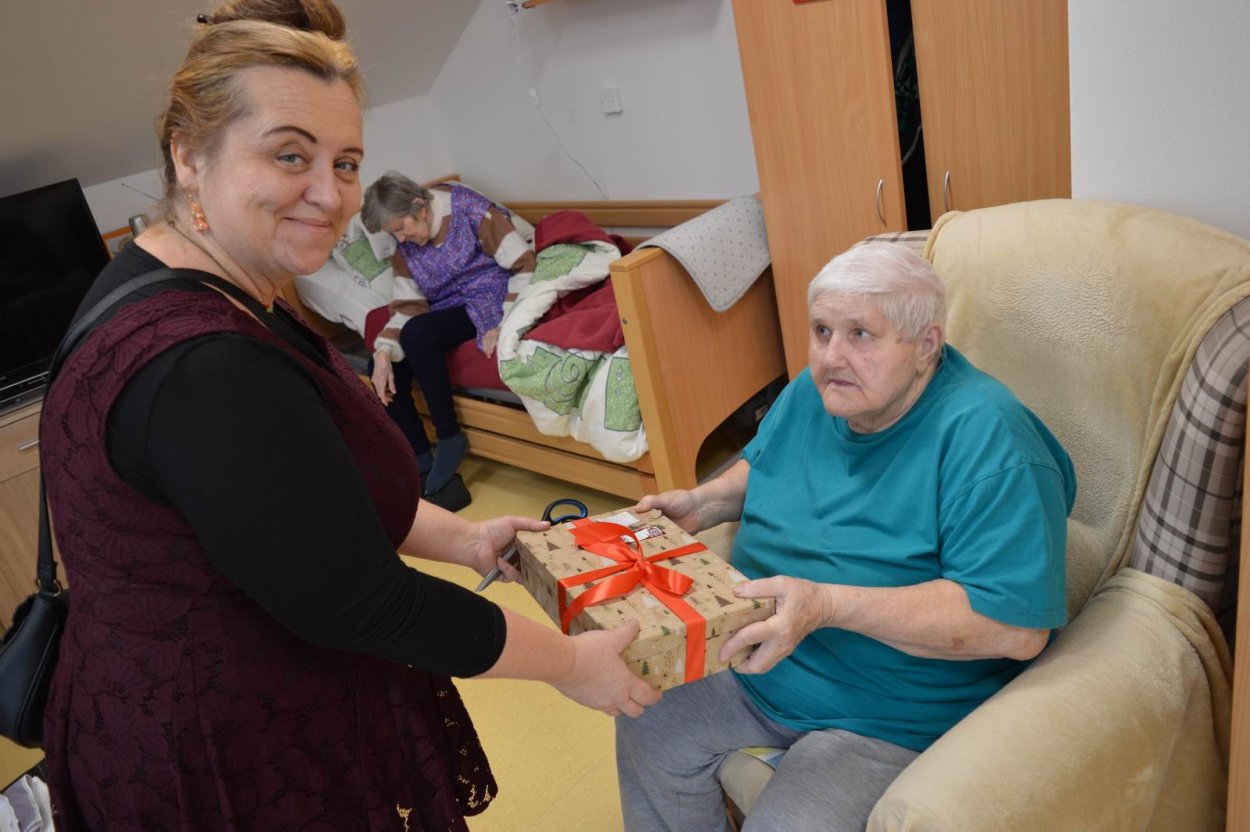 Počas decembra prichádzali zabalené darčeky, ktoré sme odovzdali našim seniorom. Väčšina našich seniorov dostala ten svoj vysnívaný darček. Mnohí mali skromné priania (kozmetiku určitej značky, knihy, krabicu plnú kávy, čajov alebo sladkostí). Tento rok napríklad mladý manželský pár splnil želanie až štyrom seniorom a mrzelo ich, že nedokázali zabezpečiť zo svojich finančných možností splnenie želaní ešte ďalším seniorom. Aj z tohto gesta je badateľné, že nie každému je ľahostajný osud seniorov v zariadeniach a aj takouto formou ich chcú ľudia pozdraviť a potešiť. Viacerí klienti sa tešili z nového oblečenia – svetríkov, teplákovej súpravy, trička, košele, mikiny na zips a hlavne niektorí páni obdarení holiacimi strojčekmi. Niektorí naši seniori si priali darčeky súvisiace s ich záľubami napr. mnoho priadze na háčkovanie, predplatné krížovkárskeho časopisu Lišiak, Plus 7 dní, ale aj predplatné denníkov. Dve seniorky sa potešili terapeutickým pomôckam – terapeutickej bábike a terapeutickej mačičke. Vo viacerých balíkoch boli priložené listy pre našich seniorov. Boli to krásne vyznania darcov, vyžarovala z nich empatia a úcta k seniorom. Ak si